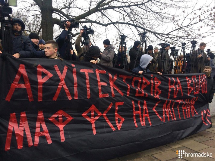 «Геть московського попа!». Активісти у Києві вийшли підтримати ув’язнених архітекторів