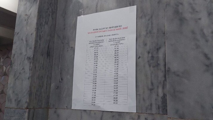 Згідно з розкладом, перший потяг їде о 7:15 зі станції метро «Індустріальна».