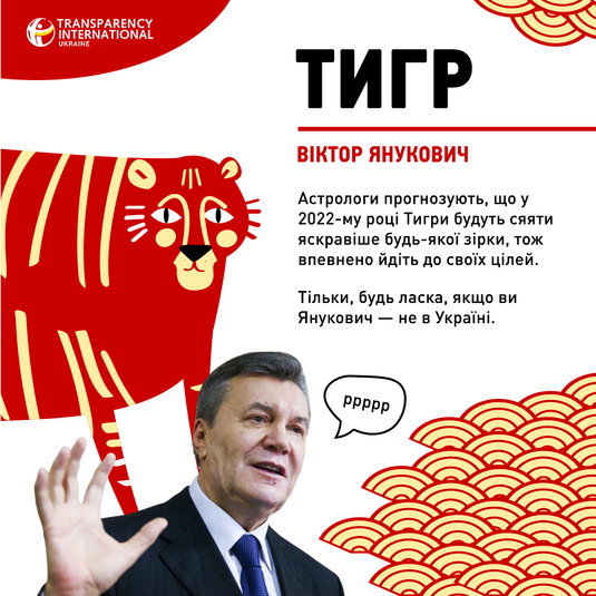 Гороскоп для тигрів з Віктором Януковичем звучить так: «Астрологи прогнозують, що у 2022 році тигри сяятимуть яскравіше за будь-яку зірку, тож впевнено йдуть до своїх цілей. Тільки, будь ласка, якщо ви Янукович – не в Україні».