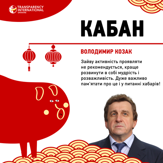 Антикорупційна організація Transparency International Ukraine підготувала незвичайний гороскоп з українськими політиками на честь китайського Нового року. Про це повідомляється на їхній сторінці у Facebook.