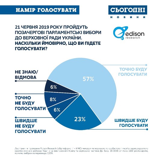 Намір голосувати 21 липня 2019 року на позачергових виборах до Верховної Ради визначався за допомогою питання «Наскільки ймовірно, що Ви підете голосувати?».