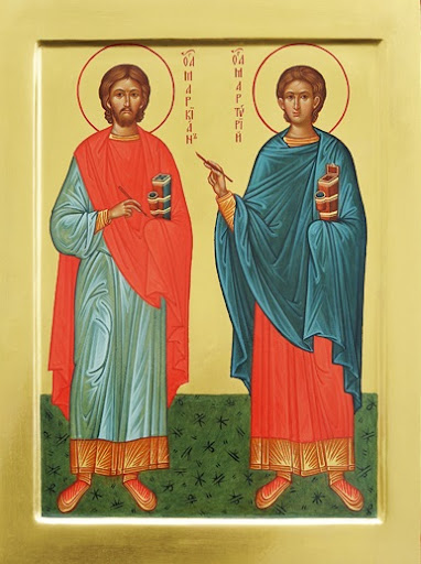 Ці святі постраждали за часів правління імператора Юліана Відступника (361–363 рр.), який намагався повернути Римську імперію до язичництва. Святий Марк був єпископом у місті Арефусія (Сирія). Ще за часів Костянтина Великого він зруйнував язичницьке капище, збудувавши на його місці християнський храм. Коли політика імперії змінилася, розлючені язичники почали вимагати від Марка відбудувати їхній храм або сплатити величезні кошти. Єпископ відмовився фінансувати ідолопоклонство. Його піддали нелюдським тортурам: били, різали ножами, обмазували медом і підвішували в кошику на поталу осам та бджолам. Проте Марк залишався непохитним, чим викликав повагу навіть у своїх катів.