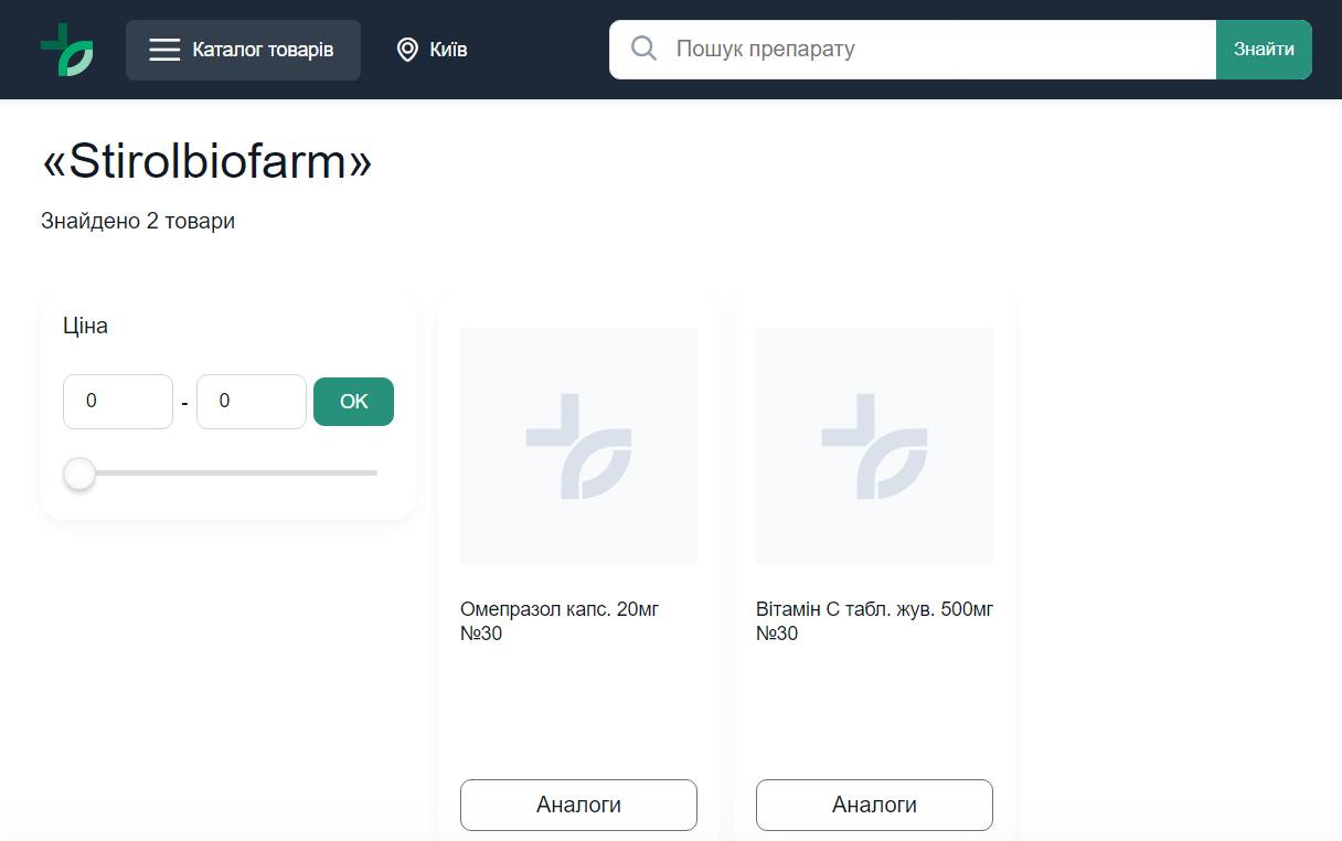Фармакологічна компанія «Стіролбіофарм», яка перебуває на окупованій з 2014 року Горлівці на Донеччині, до учора мала свою сторінку на сайті української мережі аптек «Подорожник». На це звернув увагу «Главком». Аптечна мережа відреагувала на факт, виявлений журналістами «Главкома», і вже сьогодні, 19 лютого, за пошуком Stirolbiofarm на сайті аптеки інформація відсутня.