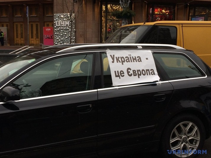 У центрі Києва, на Хрещатику, проходить акція громадського об'єднання «АвтоЄвроСила». Як повідомляє «Укрінформ», увздовж усієї вулиці від ЦУМу до Європейської площі на проїжджій частині стоять автомобілі з європейськими номерами та символікою організації.