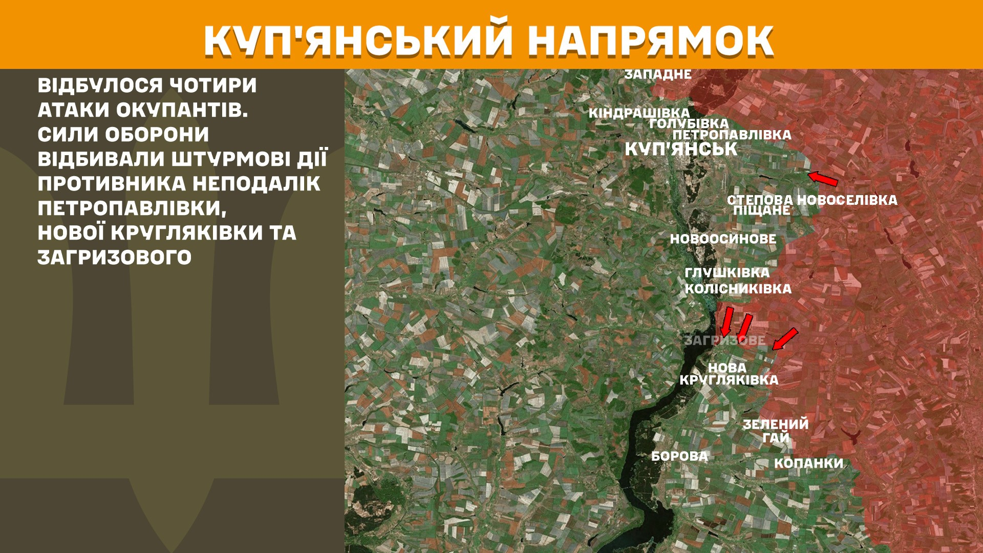 Відбулося чотири атаки окупантів. Сили оборони відбивали штурмові дії противника неподалік Петропавлівки, Нової Кругляківки та Загризового.