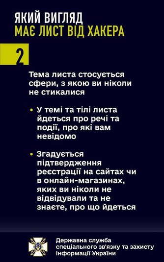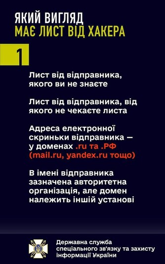 Кіберфахівці радять ставитися до листів з обережністю. Зокрема, якщо він прийшов від невідомого відправника, а його адреса електронної пошти в доменах ru або mail.ru, yandex.ru та інші.