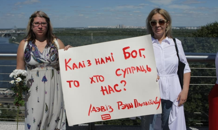 У Києві біля арки Дружби народів активісти організували акція на підтримку народу Білорусі. Про це повідомляє Укрінформ.