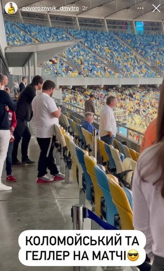 На стадіон Коломойський прийшов у компанії президента луганської «Зорі» Євгена Геллера. Впізнати його було важко. Коломойський позбувся звичної сивої бороди і змінив зачіску.