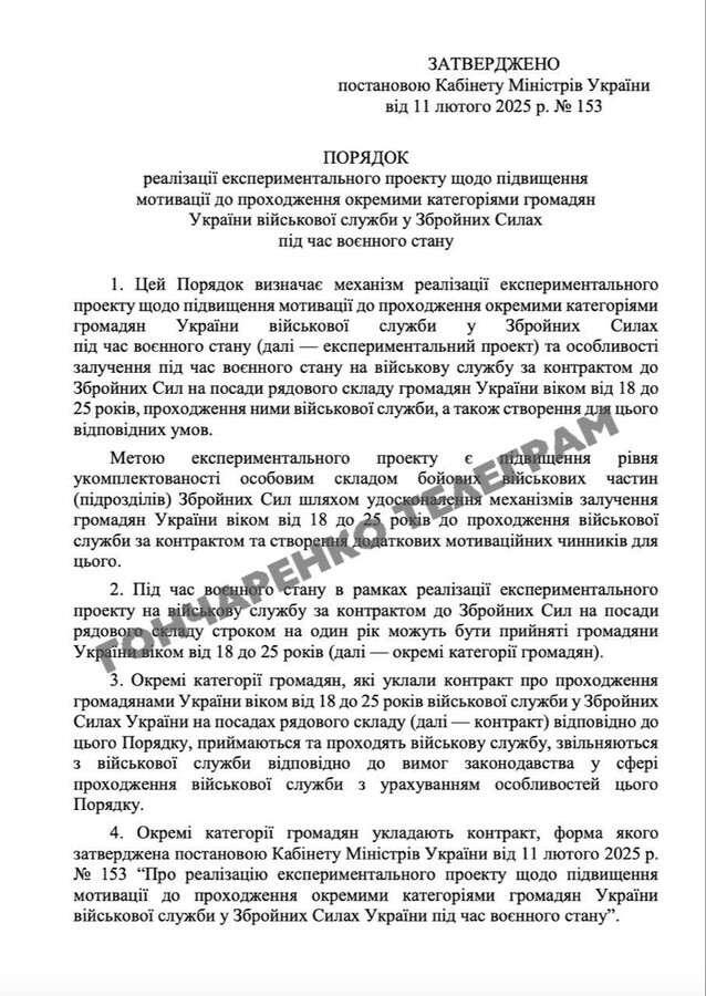 Народний депутат від партії «ЄС» Олексій Гончаренко опублікував текст постанови Кабінету міністрів про нові контракти для 18-25 річних. Про це стало відомо із його Telegram-каналу.
