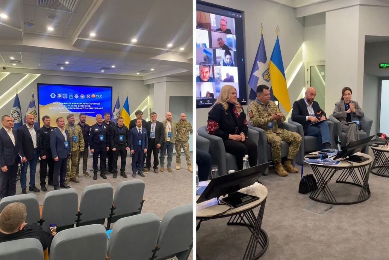 Міжнародна конференція «Особливості кримінальної юстиції за участю ветеранів: механізми ресоціалізації та реінтеграції» відбулася 19 березня 2025 року у Києві на базі Національної академії внутрішніх справ. Співорганізаторами виступили МВС, Мін'юст, Міністерство у справах ветеранів, Національна поліція, ДКВС та Центр міжнародного правового співробітництва CILC (Нідерланди).