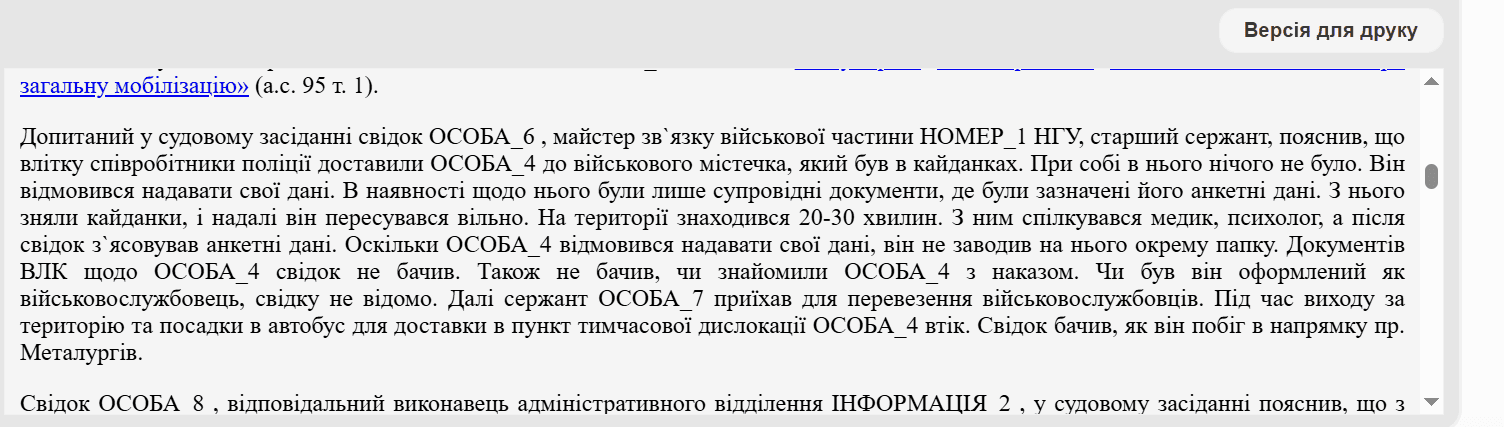 Суддя детально проаналізував законодавство і відкинув аргументи захисту. Згідно із Законом «Про військовий обов’язок і військову службу», початком служби для мобілізованих є день відправлення до військової частини з ТЦК, а не день складання присяги.