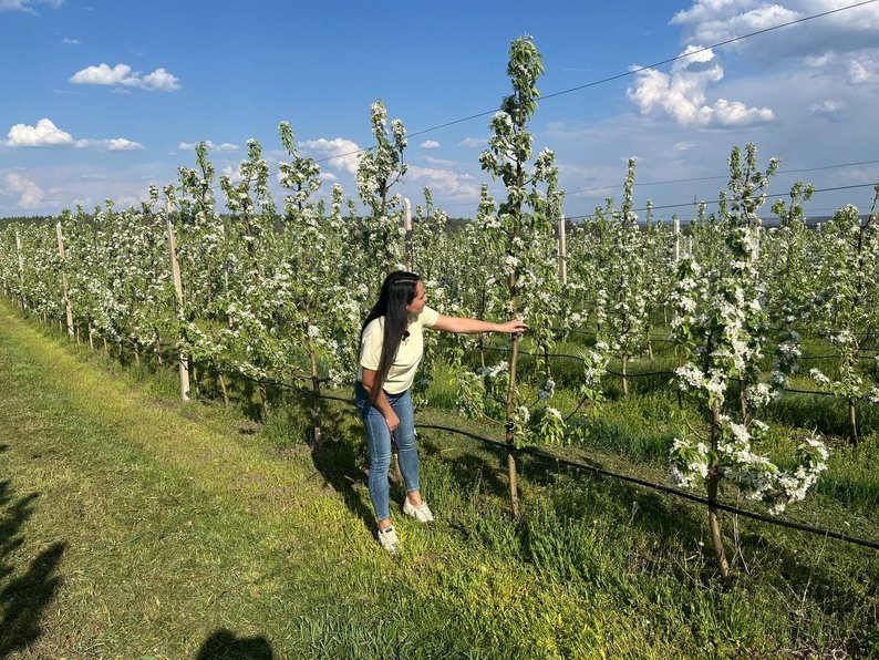 «У мене, у нашої сім’ї немає сільськогосподарської освіти. Нам любов до цієї праці прищепив батько мого чоловіка, Євгеній Віталійович. Він уже багато років займається вирощуванням вишень, яблунь, полуниці, малини. Він давав нам поради, допомагав, і так це у нас все почалося. Груша – це наша любов. В Україні частіше займаються яблуками, а груш реально дуже мало. У Черкаській області теж багато яблуневих дерев. Тому ми хотіли щось таке незвичайне».