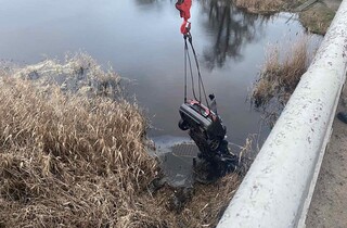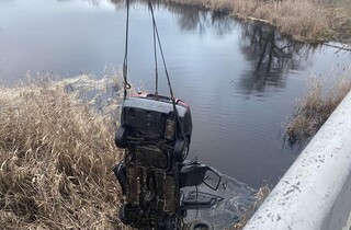 Транспортний засіб вилучили з водойми на берег за допомогою крана
