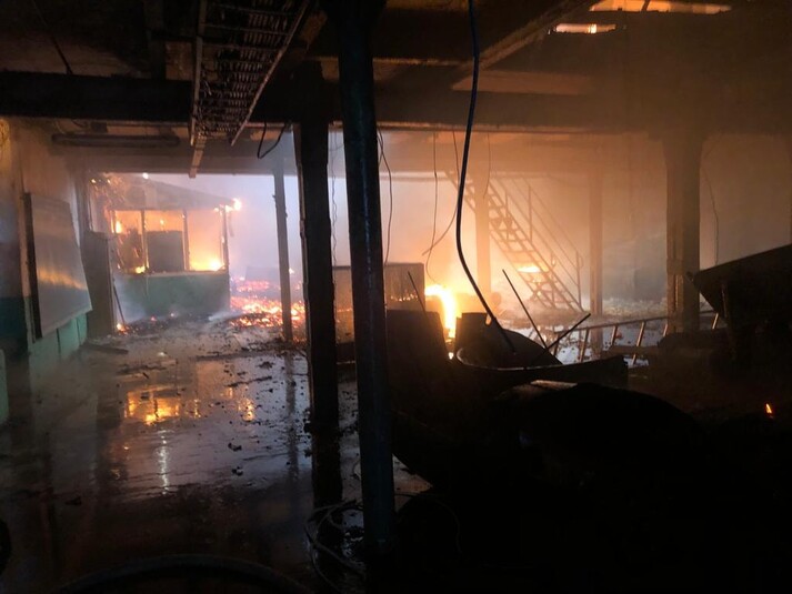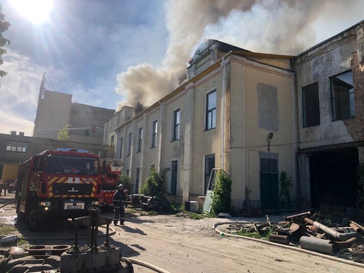 Рятувальники ліквідовують пожежу в приміщенні колишнього цукрового заводу, що у Бабині на Рівненщині.