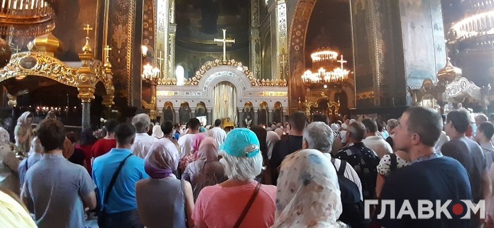 Як повідомляє кореспондент «Главкому», в храмі зібралось близько 100 чоловік, в основному літні жінки.