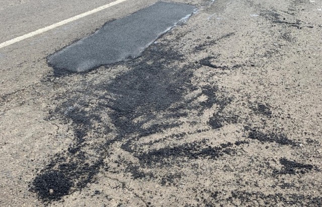 «Працівники засипають ями, розгрібають граблями, а потім притискають. Робиться все так, що залатані ями виступають від рівня дороги на 1-1,5 сантиметра. Якість суміші така, що незабаром розпадеться», - зазначив журналіст.