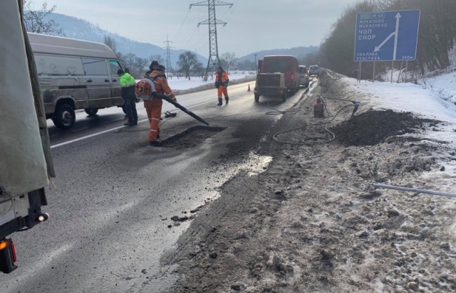 На Закарпатті перед приїздом Порошенка поспіхом латають ями на дорогах (ФОТО)