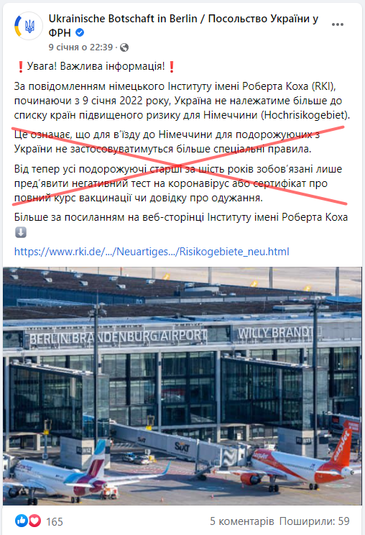 Раніше повідомлялося, що Німеччина послаблює умови в’їзду для туристів з України, однак, як повідомлялося вище, ця інформація не відповідає дійсності.