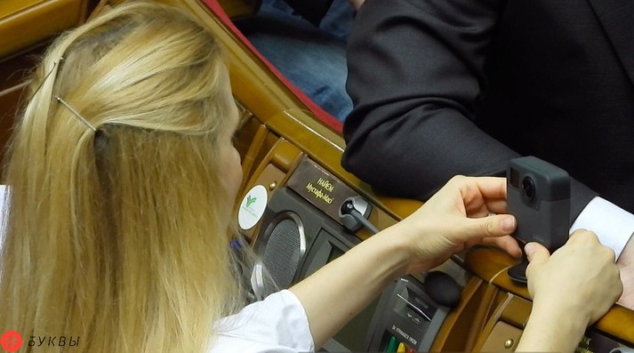 Народні депутати від фракції партії Блок Петра Порошенка Світлана Заліщук та Олексій Мушак в сесійній залі Верховної Ради обговорювали зйомку рекламного ролика на кіностудії ім. Довженка за 40 тисяч доларів. Про це #Буквам стало відомо з фотографій, зроблених у залі парламенту.