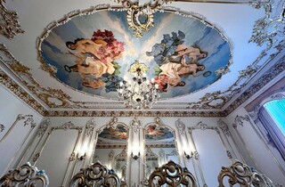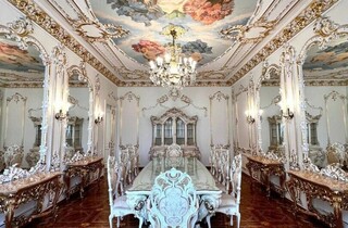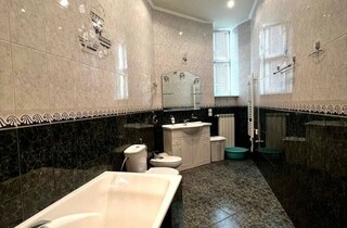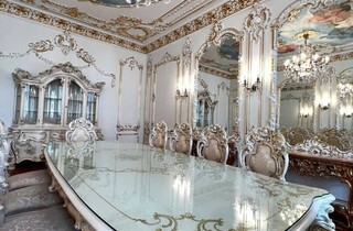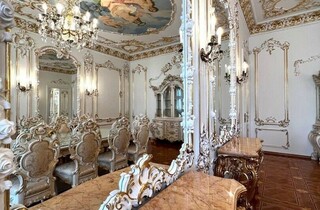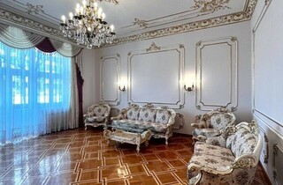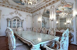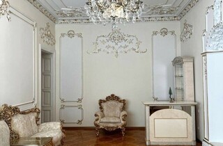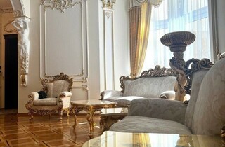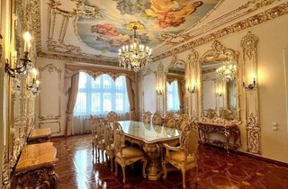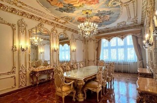 Дорожнечі додають і масивні люстри, величезні дзеркала у висоту кімнати, велика кількість картин та ефектний паркет. Із «середньовіччя» повертає тільки ванна кімната та кухня, які мають сучасний вигляд.