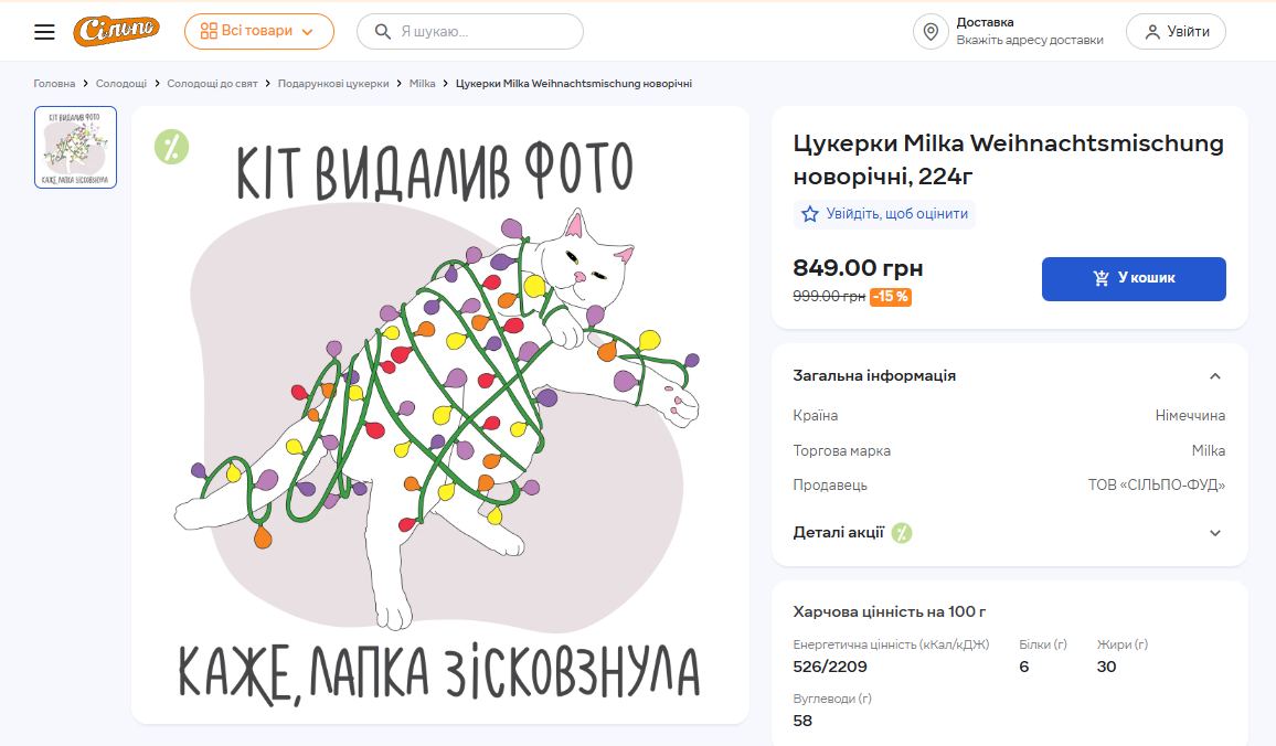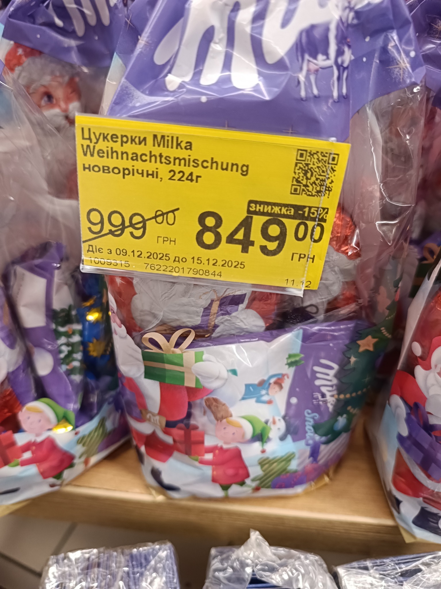 Заскочивши до «Сільпо» під час повітряної тривоги, Олена Шевчук натрапила на новорічний набір шоколадок Milka. Його ціна, навіть зі знижкою, виявилася приголомшливою. За її словами, магазин здивував, бо «на продукти тут можна лише дивитися, а купувати простим українцям – неможливо, ціни не дозволяють».
