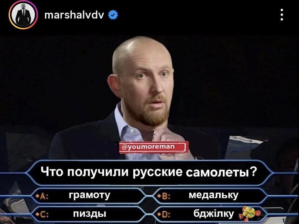Стрічки новин, Twitter, Telegram-канали та Instagram рясніють жартами, фотожабами та відеороликами з «втратами» російської авіації та майстерність українських спецслужб. Особливою популярністю користуються меми з очільником СБУ Василем Малюком.
