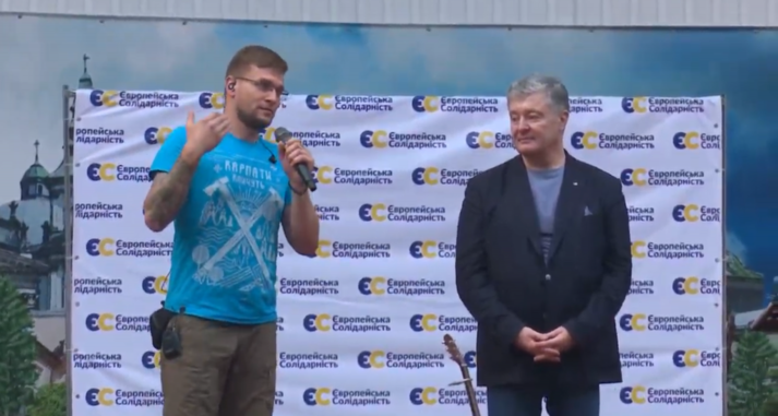 «Наш ветеранський рух «Захисти Україну» складається з ветеранів та волонтерів. Для нас, ветеранів, ви залишайтесь Головнокомандувачем. Ні для кого не секрет, скільки зараз Петро Олексійович віддає і коштів, і сил для зміцнення наших Збройних сил. Тому я від нашої громадської організації «Захисти Україну» хочу подарувати нашу фірмову футболку, і тут цей слоган буде звучати як прохання до вас особисто», – звернувся до Порошенка відомий тернопільський активіст, волонтер, ветеран АТО Дмитро Гайдуцький.