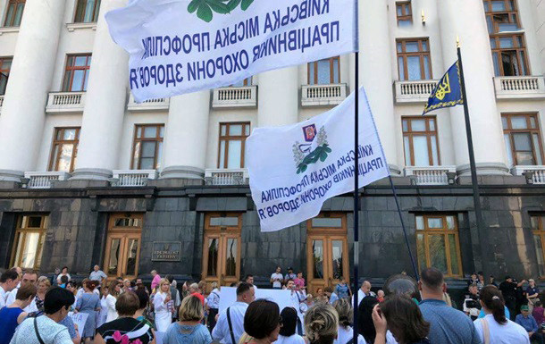 Під Офісом президента мітингують кілька сотень людей, більшість з яких - працівники медичних установ та лікарських об’єднань.