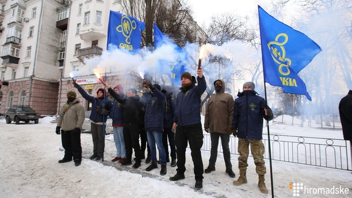 На акції здебільшого присутні представники «Нацкорпусу», люди з прапорами «Правого сектора», «Свободи» та «Соколу», загалом близько 100 людей.