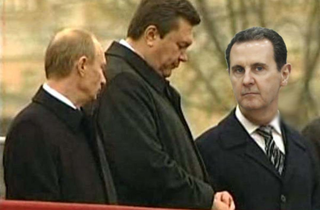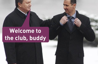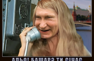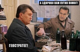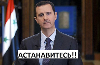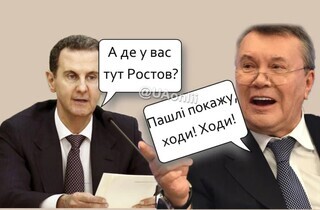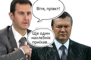 Також у мережі створили колаж з фотографіями Віктора Януковича, Башара Асада, Володимира Путіна, Віктора Медведчука. А поряд написали «Астанавітєсь» – фразу, яку свого часу казав Янукович.
