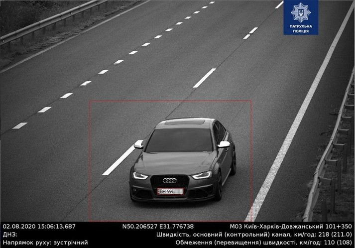 - Audi A4 (державний номерний знак BH444***) - 218 км/год на автодорозі М03 Київ - Харків - Довжанський, де дозволена швидкість на вказаній ділянці — 110 км/год,