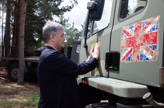 «Я про це раніше ніколи не розповідав, але зараз хочу поділитися. Ми були на багатьох складах, перед тим, як підписати контракт на сотні вантажівок. Один з цих складів якраз у Великій Британії. Ви не уявляєте, яким юридичним пеклом було отримати усі ліцензії, без перепон купити та вивезти техніку в Україну. Тоді я сконтактував з міністром оборони Британії Беном Воллесом, який зміг прискорити цей процес. Ми змогли швидше отримати ліцензії та перевезти автівки в Україну», – розповів п’ятий президент.