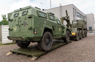 Чергова партія техніки знову готова вирушати на східний фронт, її Порошенко передасть морпіхам та бійцям бригад ДШВ. Тут кілька британських DAFів, лазне-пральні комплекси, а також супертягач Foden, який допоможе доправити на передову відремонтований броньовик SHIELD, який був уражений під час ворожого обстрілу 120-мм міною. Завдяки міцній бронекапсулі бійці вціліли, а от броньовичок довелося «латати», нагадує Порошенко. Тепер він повернеться у рідну 79-бригаду, яка воює в районі Мар’їнки.