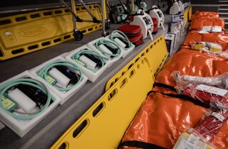 «Дивіться, які можливості будуть у військових медиків, які працюють на лінії фронту, щоб рятувати життя наших воїнів. Це кисневі балони, системи для дозування ліків під крапельницями. Дуже якісні моделі ліжок. Є дефібрилятори з можливістю робити кардіограму. Є апарати штучної вентиляції легень. Є ноші, спеціальне обладнання для підігрівання крові, яка буде вводитися у випадку великої втрати крові. Зазвичай волонтери беруть на Заході вже вживане і привозять те, що є. Це – абсолютно нове обладнання», – показує Порошенко.