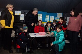Петро Порошенко під час поїздки у Херсон зустрівся із містянами, які пережили російську окупацію. Юні херсонці показали свої малюнки – на них українська армія знищує русню.
