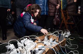 У гуманітарному центрі є струм для зарядки мобільних телефонів і павербанків, а також працює велика пічка для обігріву