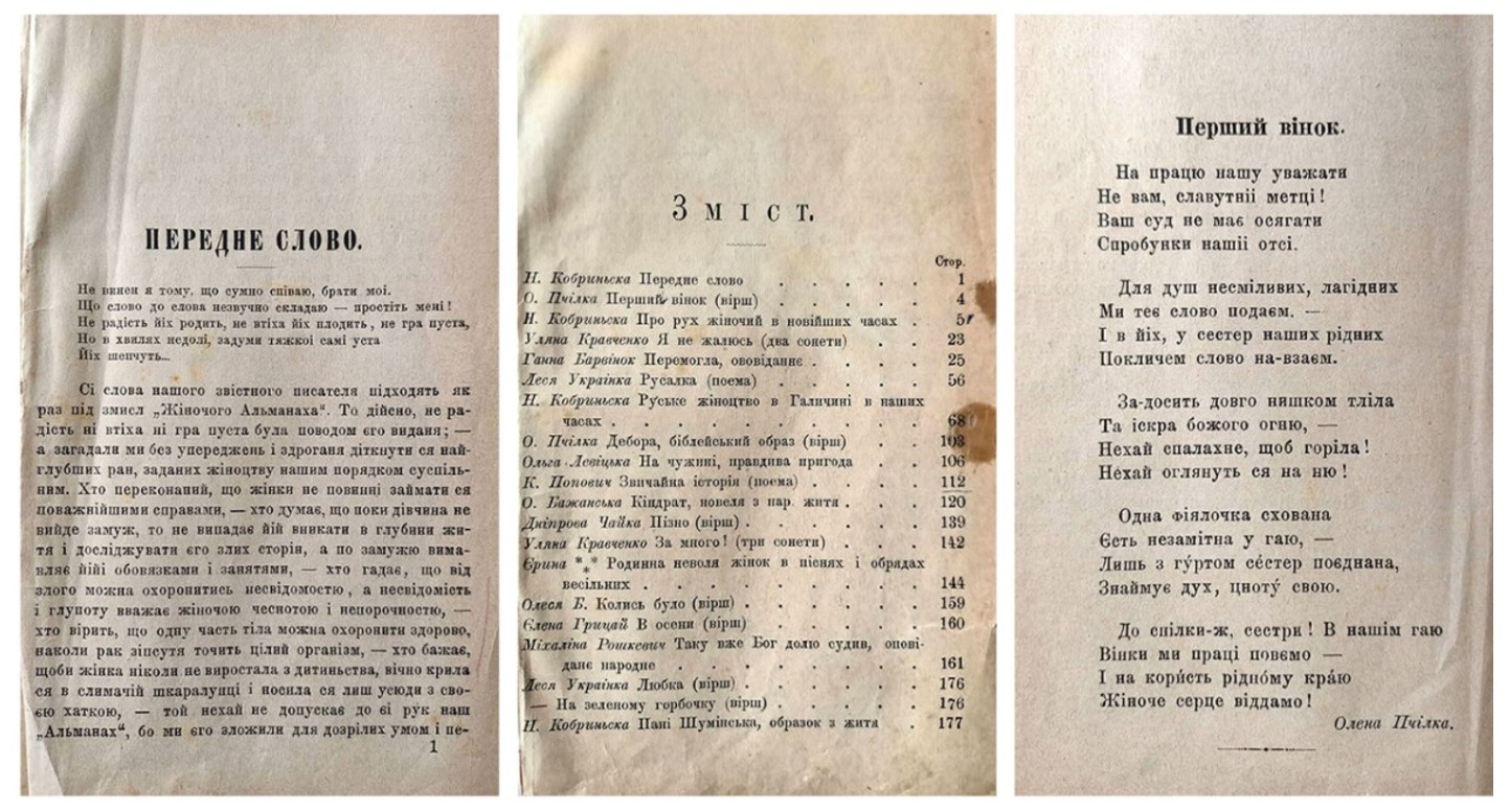 Але Галичина боролася за права жінок на свій лад. У цьому регіоні однією зі знакових постатей у боротьбі за права жінок в Україні стала Наталія Кобринська. Вона заснувала у 1884 році «Товариство руських жінок», і саме цю подію прийнято вважати початком українського жіночого руху. Під керівництвом Кобринської товариство видавало феміністичний альманах «Перший вінок», який зібрав твори письменниць, що звертали увагу на соціальну нерівність та гендерну дискримінацію.