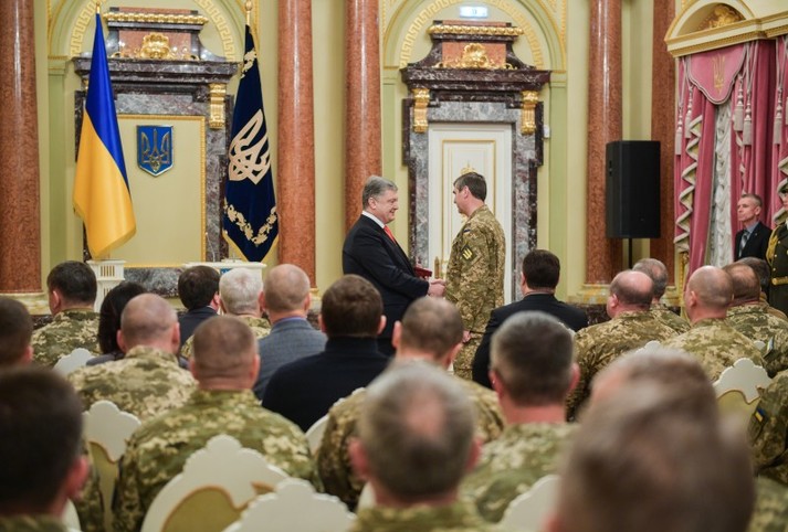 Президент Петро Порошенко з нагоди 27-ї річниці створення Збройних сил України вручив високі державні нагороди військовослужбовцям ЗСУ, які проявили мужність та відвагу у захисті незалежності та територіальної цілісності держави.