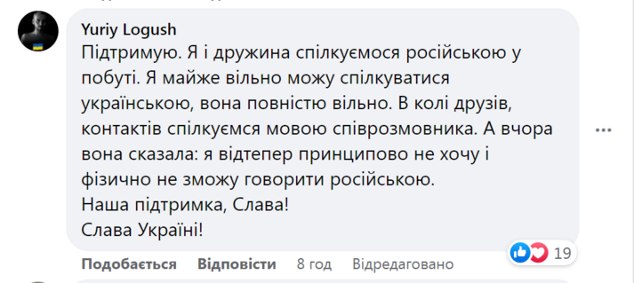 За добу пост українця набрав понад 4 тис. лайків. У коментарях російськомовні повідомляють, що також переходять на спілкування українською.