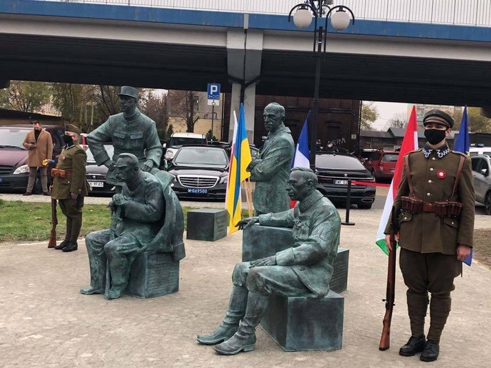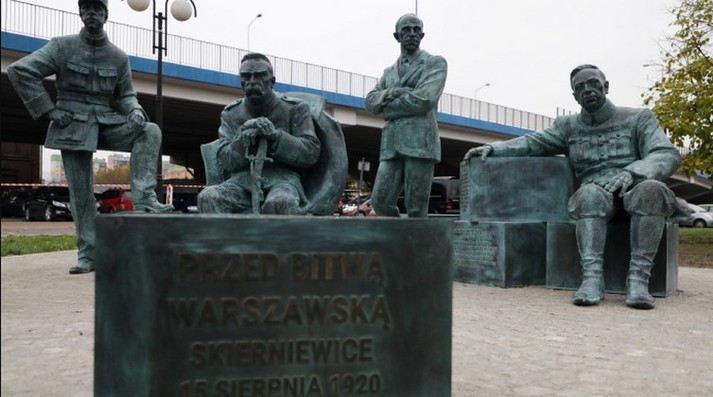 Монумент «Перед Варшавською битвою» зображає Юзефа Пілсудського разом із Палом Телекі, Шарлем де Голлем та отаманом Симоном Петлюрою