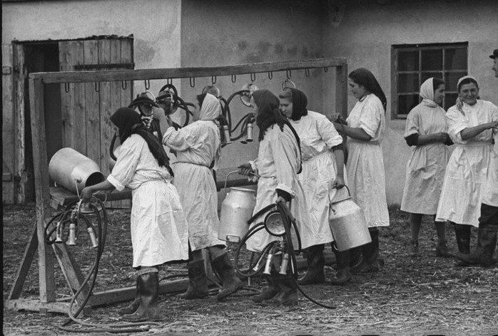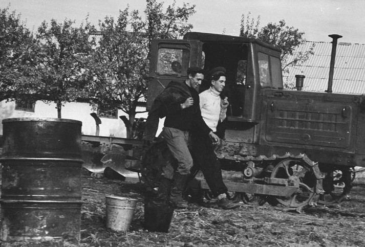 Фотограф також заходив на ферму, зняв доярок і трактористів. Зробив загальну панораму села.