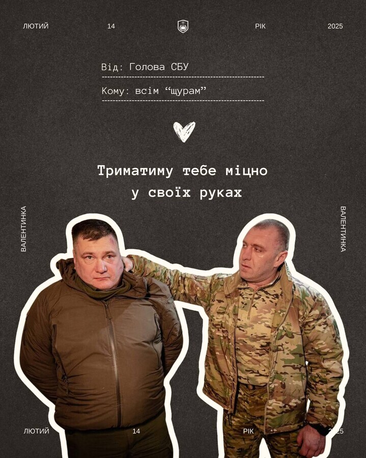 «Якби СБУ писала валентинки, вони б могли мати ось такий вигляд», – написали спецслужбовці у своїх офіційних соцмережах.