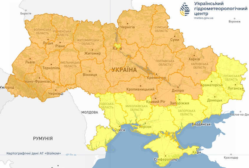 Крім того, в нічний час 27 та 28 квітня прогнозуються сильні заморозки в повітрі до 0…-3° (помаранчевий рівень). У південних та південно-східних областях 27 квітня також очікуються заморозки на поверхні ґрунту в межах 0…-5°, що відповідає жовтому рівню небезпечності.