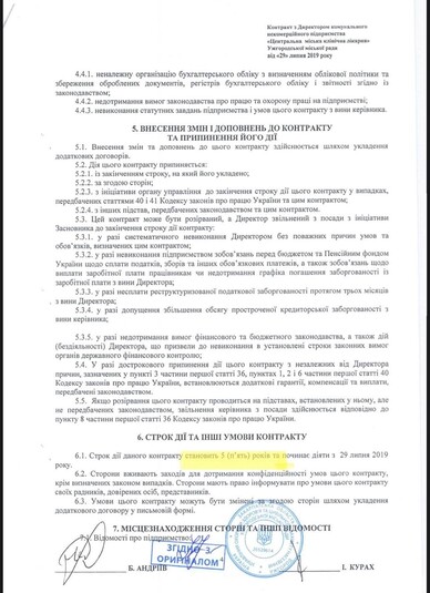 «У контракті зрозуміло все крім одного – чому замість 3 років, як зазначено у поданні конкурсної комісії, Богдан Андрєєв підписує його на 5 років? Іншого пояснення, ніж підробка документа, щоб продовжити термін контракту та разом із головлікарем проводити угоди з бюджетом та лікарнею не 3 роки, а 5, просто не існує», – пишуть журналісти.