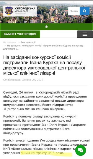 «Що теж наводить на певні підозри про цей конкурс та законність призначення Івана Кураха директором КНП «Центральна міська клінічна лікарня» Ужгородської міської ради…», – констатують журналісти.