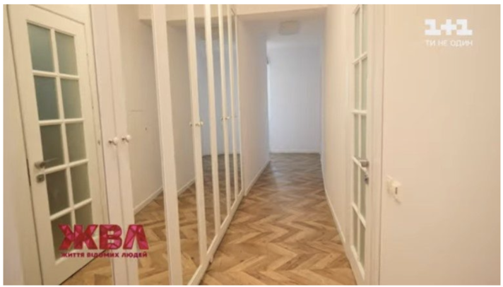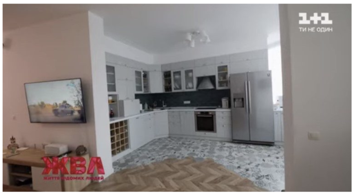 Простора трикімнатна квартира у новому районі Києва виконана у світлих тонах. Зокрема, у зіркових апартаментах облаштована велика кухня-вітальня з сучасною технікою, а також стильним дизайном. Саме тут зіркове сімейство проводить більшу частину свого часу.