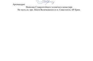 Предстоятель УПЦ МП митрополит Онуфрій віддав ставропігійний чоловічий монастир на честь преподобного Паїсія Величковського в Севастополі Російській православній церкві. Про це можна зробити висновок з розповіді архімандрита Гавриїла (Сергія Анисимова).