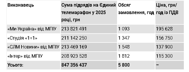 Видання зазначає, що прописано різний обсяг оплачуваного контенту, відтак ціни за годину різняться. Отже, сумарно вартість створення контенту на поточний рік зросла до 847 млн грн.