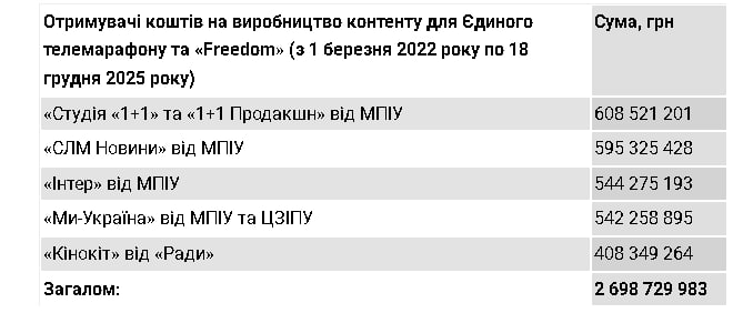 З урахуванням видатків на ще один телемарафон Freeдом виробникам контенту для обох марафонів заплатили вже 2,70 млрд грн.