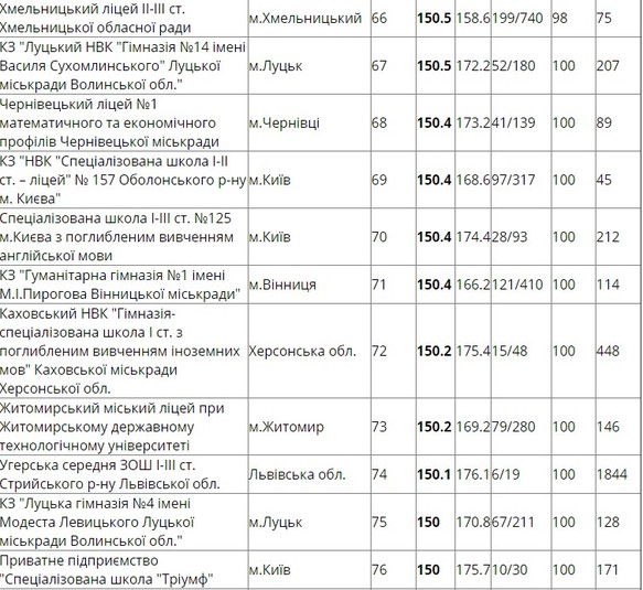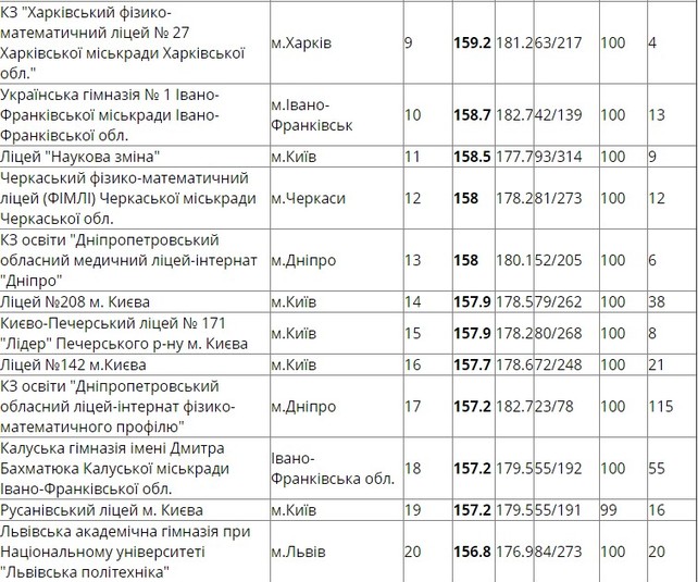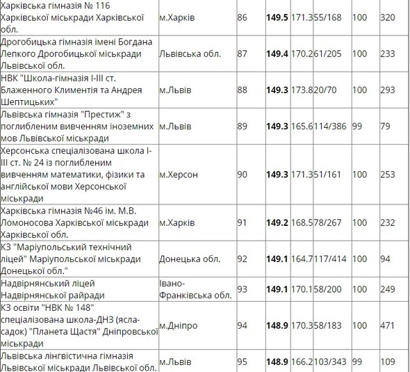 Найкращим став Львівський фізико-математичний ліцей-інтернат при Львівському національному університеті імені Івана Франка із середнім балом ЗНО 183.5.